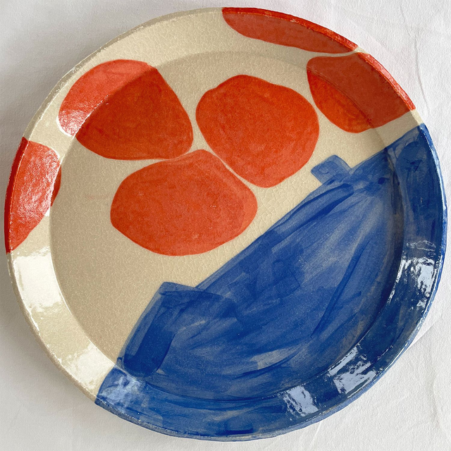 Handbuilt stoneware plate painted with underglaze.