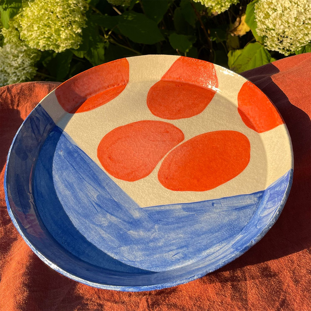 Handbuilt stoneware plate painted with underglaze.